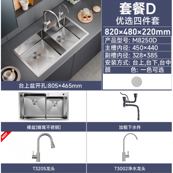 304 Stainless Steel Sink Kitchen 4-Piece Set